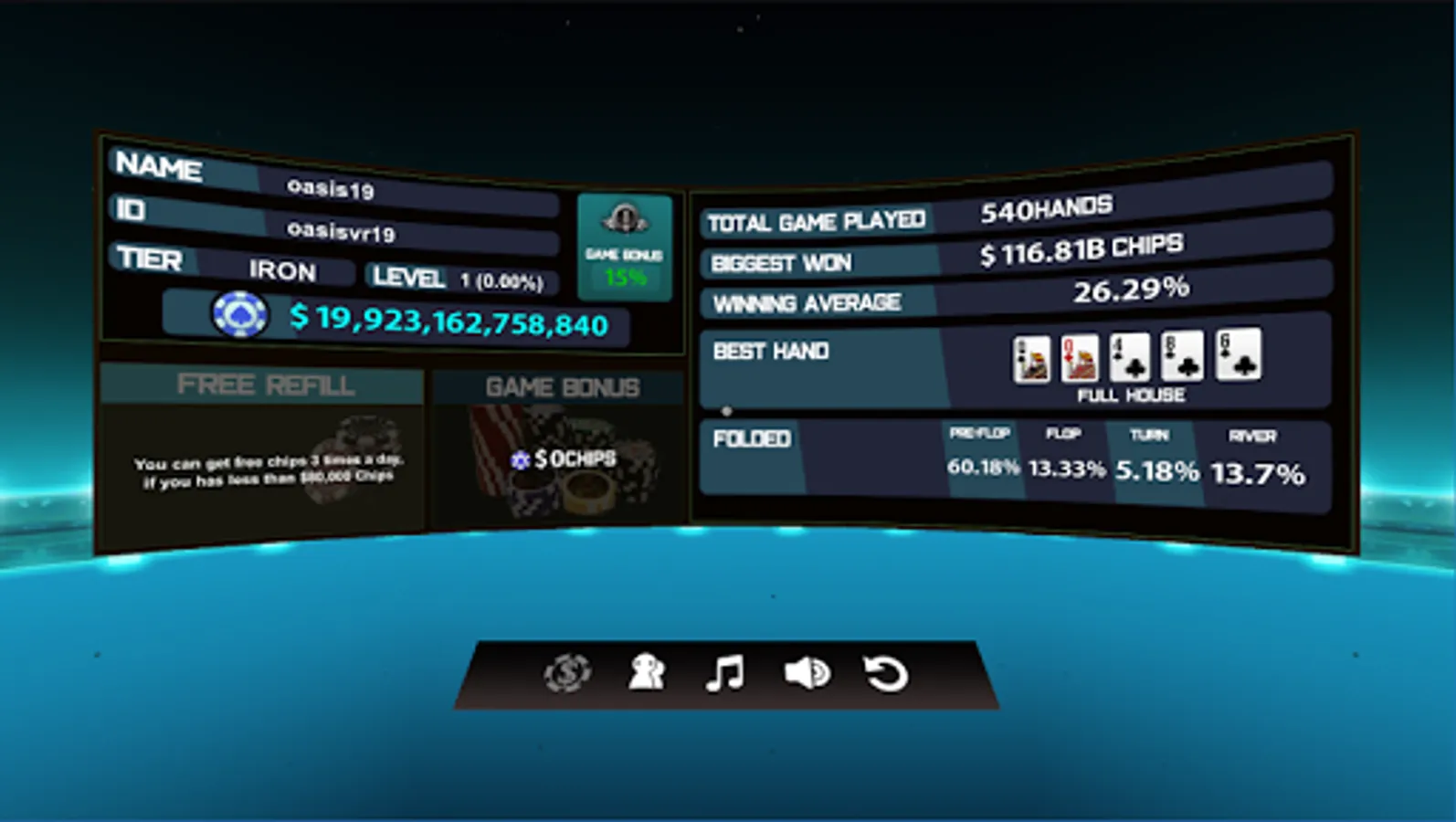 Start your hand with fair guaranteed dealing, get into new Texas Hold'em Poker VR and let your aggression comes out at the live competition with other poker players.