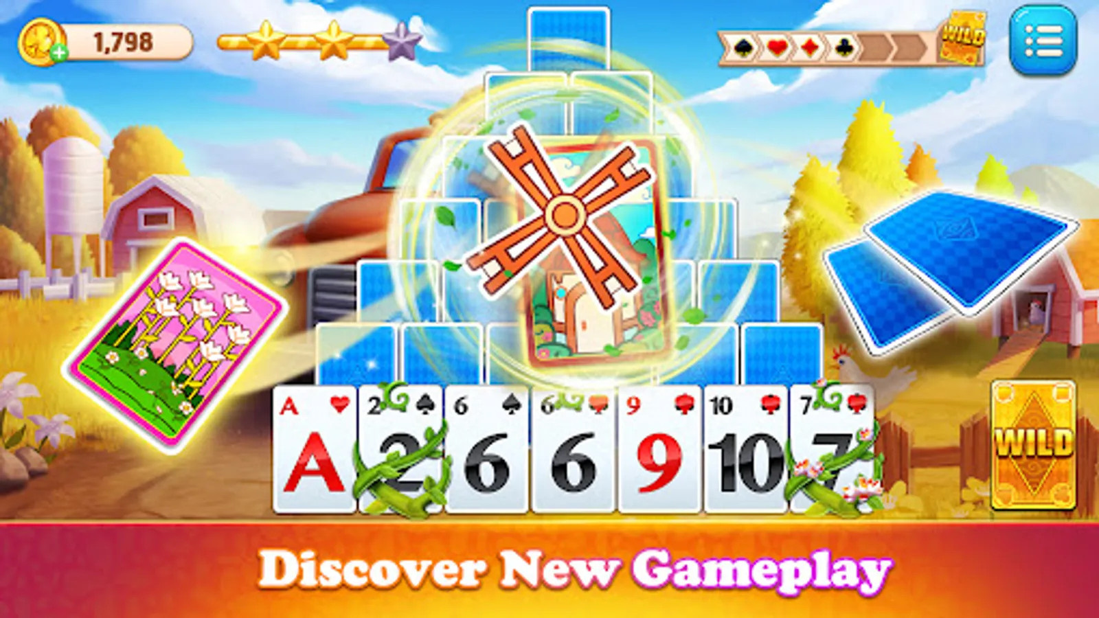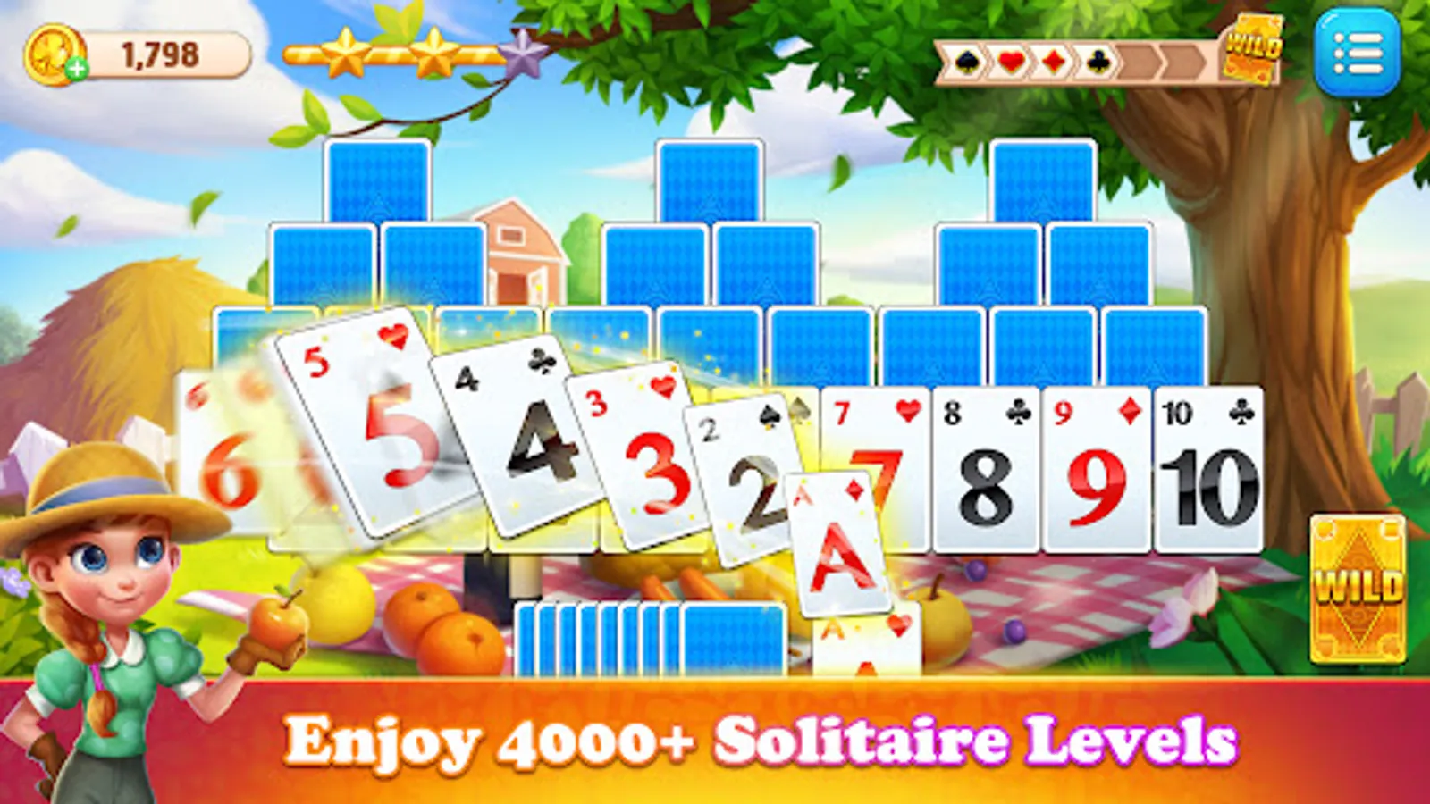 Collect your daily harvest, complete solitaire missions, and fun mini-games to earn free solitaire games rewards, Wild Cards and powerful tripeaks boosters