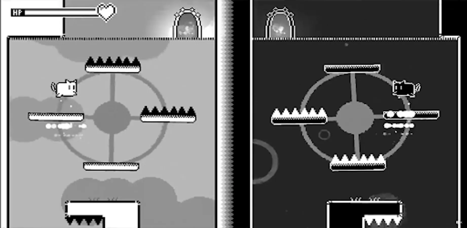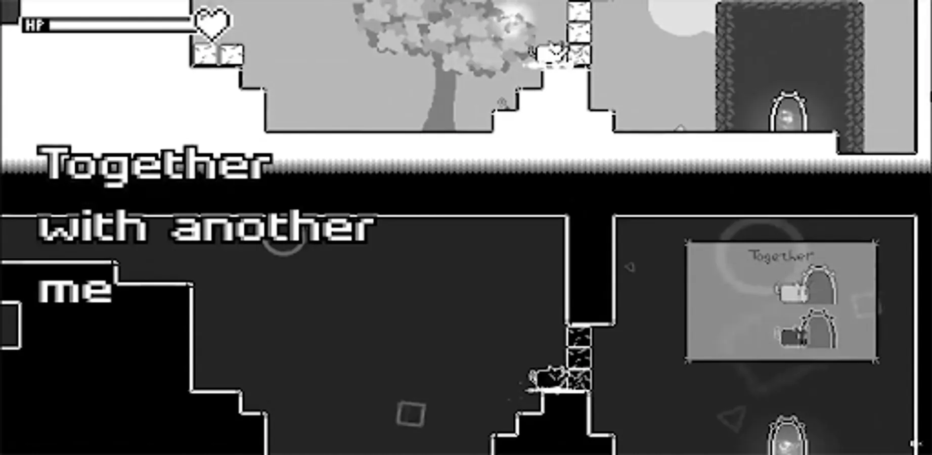 Me With Me is a platformer game with "two" playable characters in which the player controls a "White Cat" while it also applies to the "Dark Cat". The villain from the Dark World wants to dominate the Light World, by capturing all of the fairies, so both cats must together go on an adventure to save the fairies and remain the balance between the dark and light world