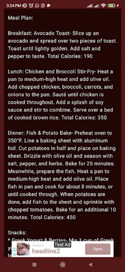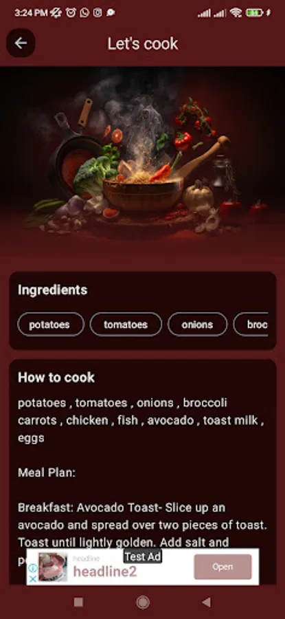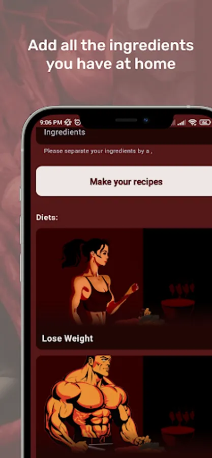 1. Type in the ingredients you have in your fridge, and our app will generate four meal plans for the day that are tailored to your fitness goals.