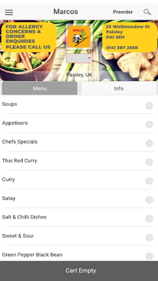 Conveniently order from Marco's Hong Kong Kitchen at 23 Wellmeadow Street, Paisley.