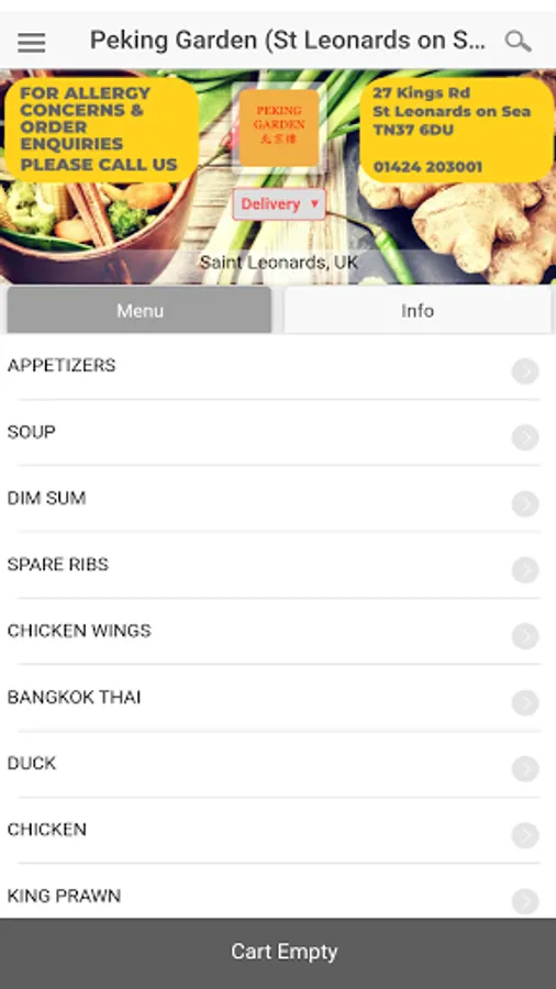 Conveniently browse the menu and order from Peking Garden Chinese Takeaway located at King's Road, Saint Leonards on Sea.