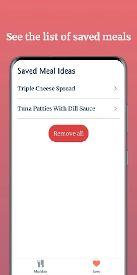 A: Go to the "Saved" section (from the bottom bar) and tap the recipe you wanna remove. On the Recipe you'll see a remove button, that will remove it from your saved list.