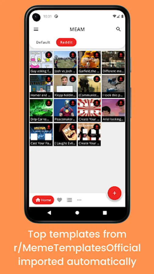 • Reddit templates imported automatically from top posts of r/MemeTemplatesOfficial