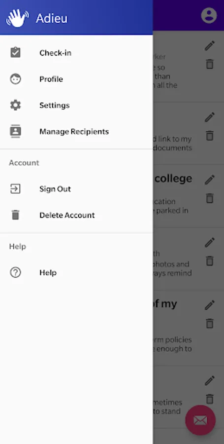 * We'll periodically send you reminders to check-in to Adieu to mark your well-being. You can check-in via the mobile app or the website.