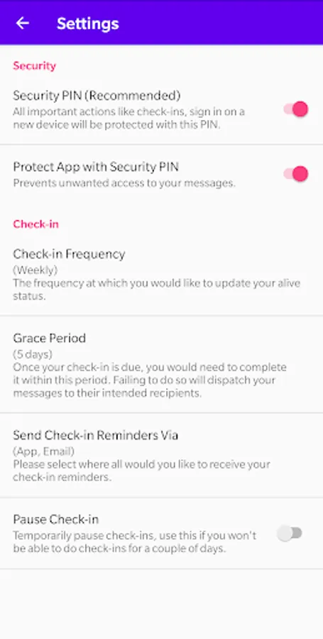 * If you miss your check-in, and we do not hear from you within your grace period, we'll dispatch your messages to their intended recipients.