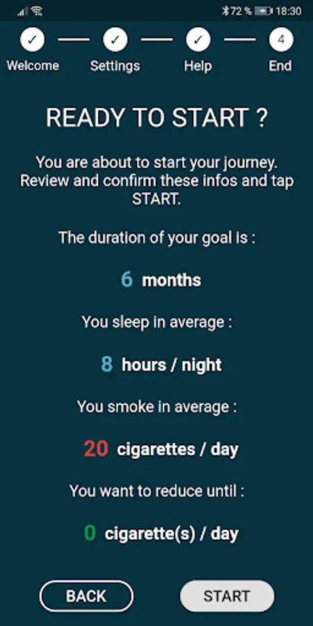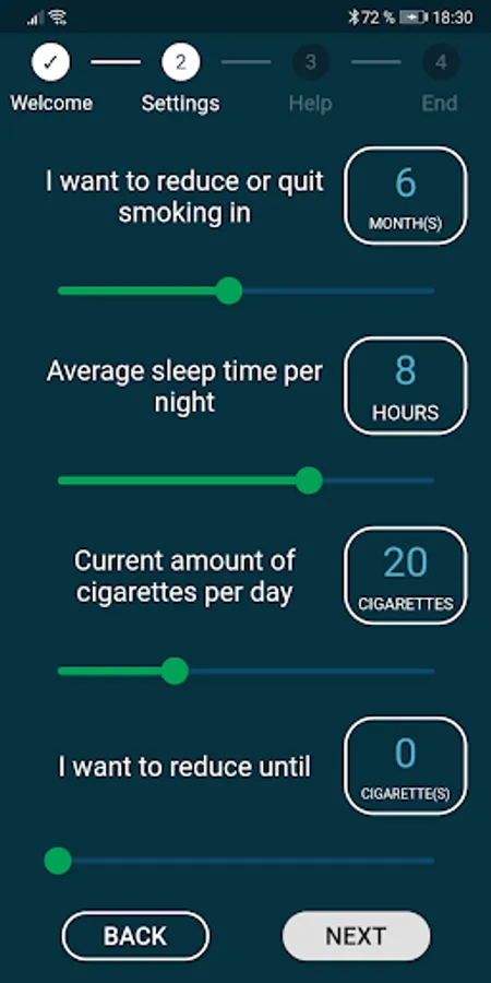 The algorithm within the app takes your parameters to setup a smart curve that corresponds to your own smoking habits :