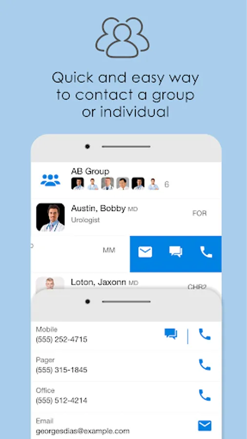 Contact information in mContacts is viewable to all team members. So, everyone is literally on the same page. All changes, additions, and deletions are updated in real time. Forget reconciling multiple contact lists with disparate information. Simply manage one contacts for your entire team. Create custom user groups and divisions. Filter contacts by department. Do it all on your phone for your team.