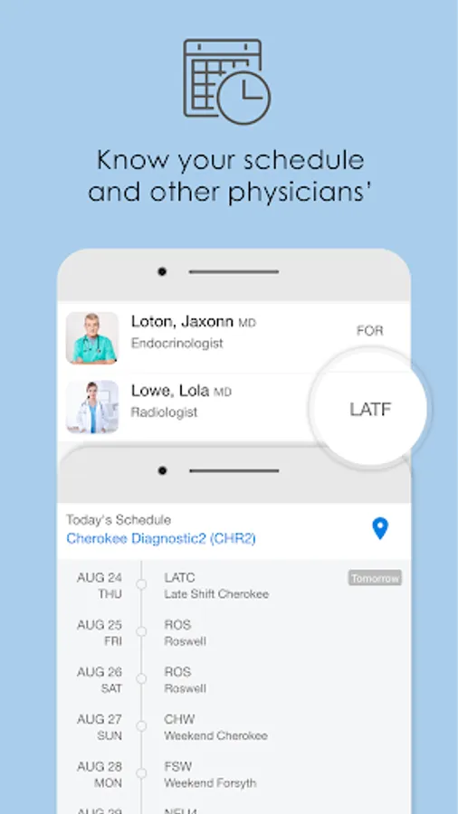 With mContacts, you have access to more than just phone numbers and email addresses. We integrate work schedule and location information. Now you can find out when and where your team members are working, or which team member is working at a specific location.