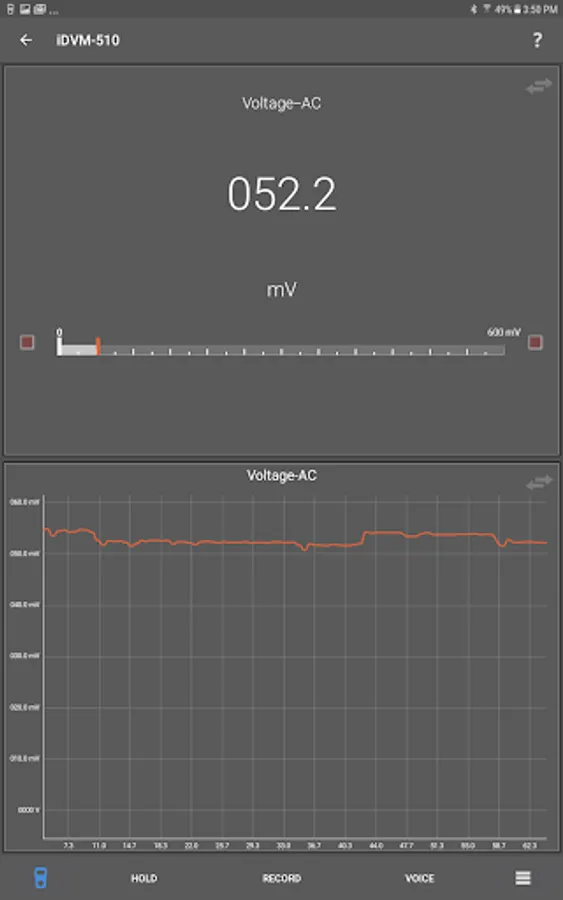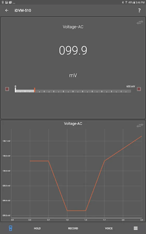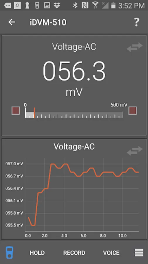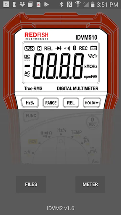 The new iDVM500 series multimeters provide connectivity to Android devices via this app and Bluetooth 4.1, sometimes known as Bluetooth Low Energy (BLE) or Bluetooth Smart. With this app connected to an iDVM multimeter it is possible to: