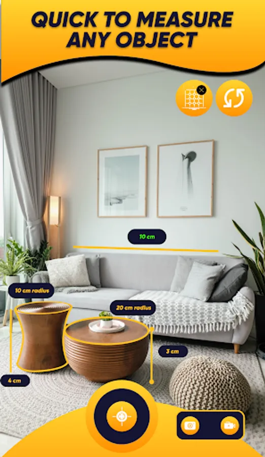 Want to make a house or room no problem, this AR ruler inches is here to get accurate room measurement by using your camera. Measure height in Feet, Inches or meter like best measurement tool for free. AR camera measuring app with accurate ruler to calculate area in length and width or height fast and perfect.