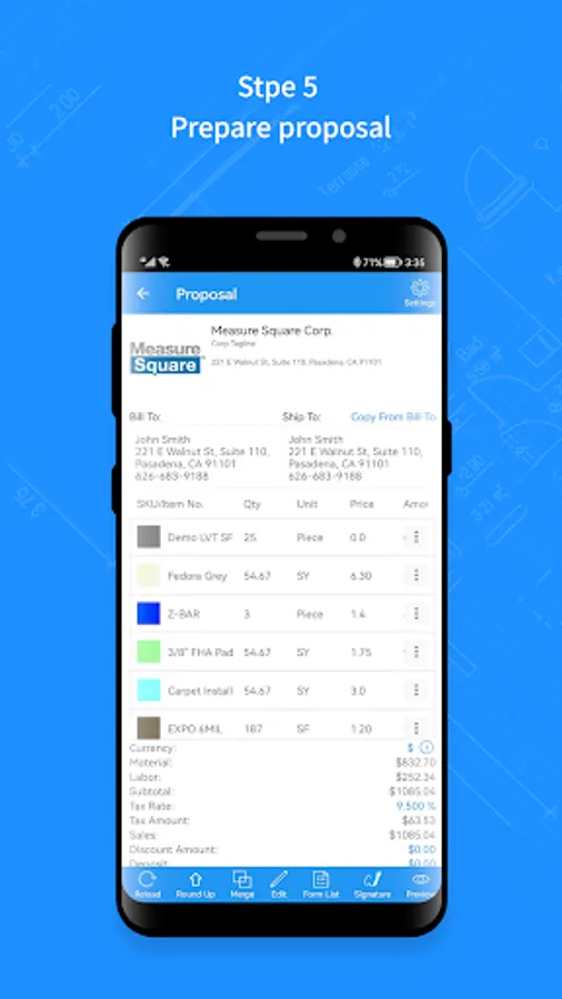 MeasureSquare Mobile is a great fit for renovation, remodeling and restoration contractors. This is especially for those that need professional flooring sales estimates, installations and home building bids. Users can build their own catalogs with products and labor services charges.