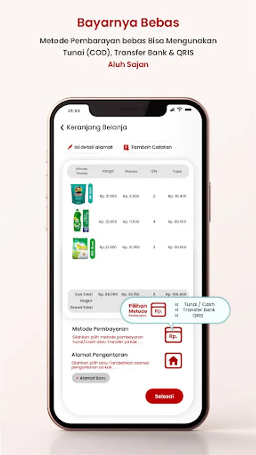 The Shopping App has many features of the right service product. shopping easily using the application will be delivered directly by our internal Driver quickly
