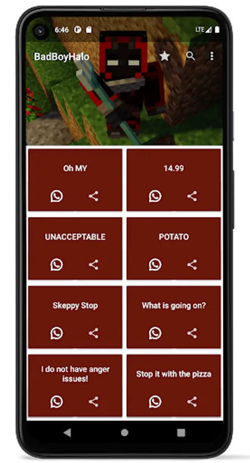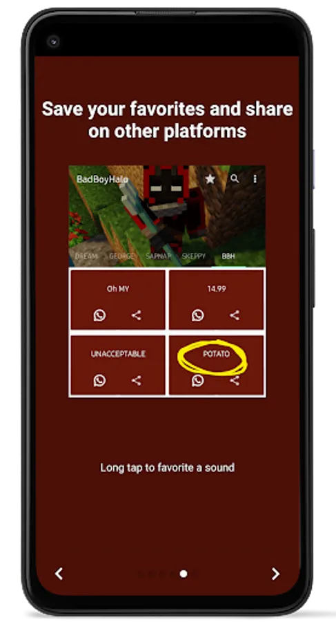 Share the sounds with your friends and laugh with them. Make your web chat conversations a lot more funny with BadBoyHalo Soundboard Sounds and Memes Skeppy BBH Dream SMP, because the app allows you to share the sounds in any web chat application.