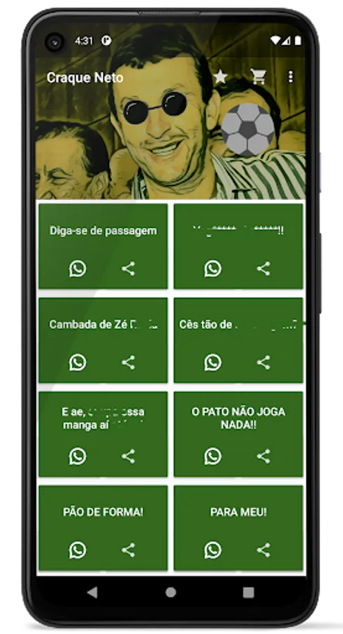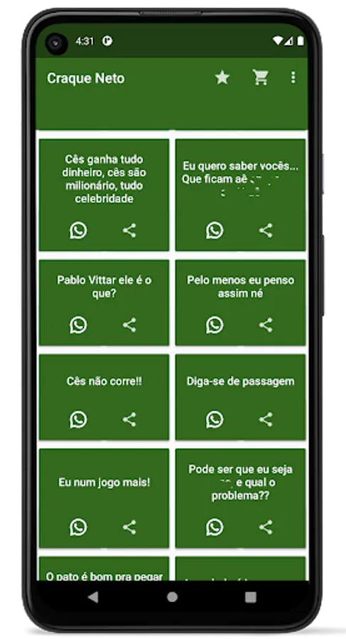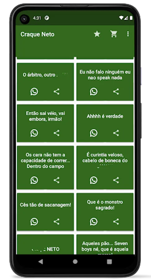 This app is a soundboard that allows you not only to listen, but also to share with your friends the classic phrases of CRAQUE NETO.