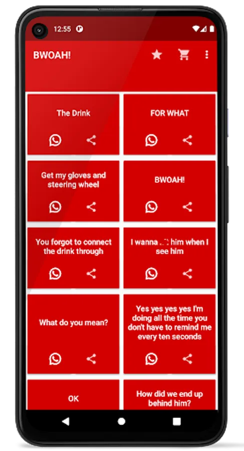 You can use BWOAH app to share these sounds with your friends in any other conversation app - therefore making you one of the funniest guys of your group. BWOAH also contains some jokes that will make you and your friends laugh for free.