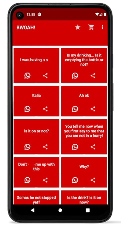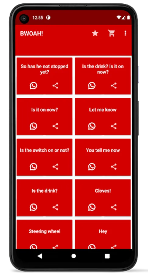 You can either listen to BWOAH sounds and mumbles inside the app or share the audios totally for free to another third party app. You can use BWOAH app in the middle of a conversation to change it into something funnier both for you and other participants.
