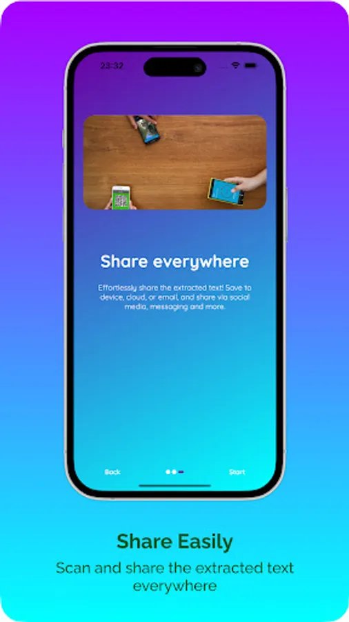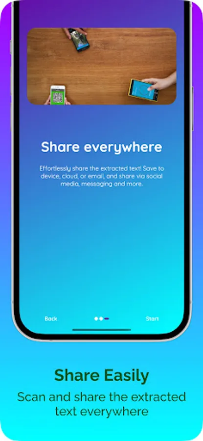 Effortlessly share your extracted text with friends, colleagues, or anyone you wish, thanks to our app's versatile sharing options. With a few taps, you can easily share the text via messaging apps, email, social media, or any other compatible application installed on your device. Seamlessly collaborate on projects, enhance productivity, or simply share captivating snippets with your loved ones.