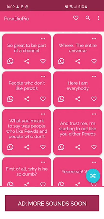 What sets our app apart from the rest is the quality of the sound bites. We have carefully curated the best of the best from PewDiePie's videos, so you can be sure you're getting the most hilarious and memorable moments. Our soundboard is perfect for making prank calls, creating memes, and just having a good time with friends.