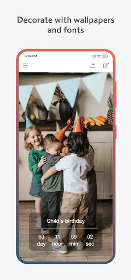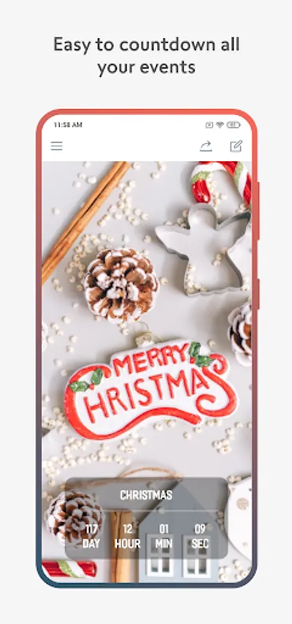 Countdown to important days, dates and events in your life, such as: Birthdays, Holidays, Christmas, Weddings, Anniversaries, Births, Graduations, Fitness Goals, Retirement and many more.