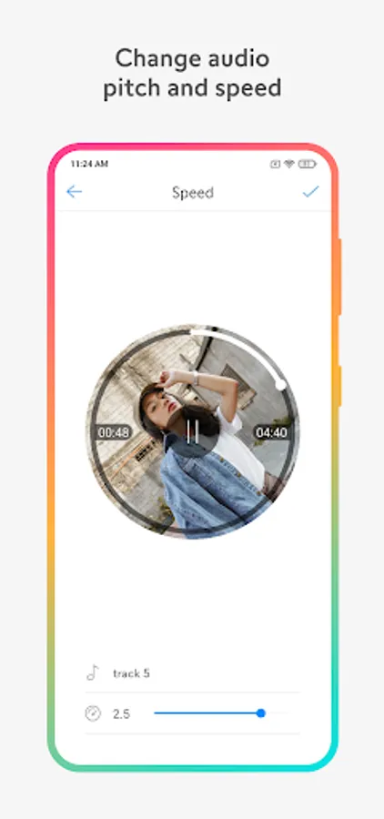 - Audio speed changer: Increase or decrease the speed of the song.