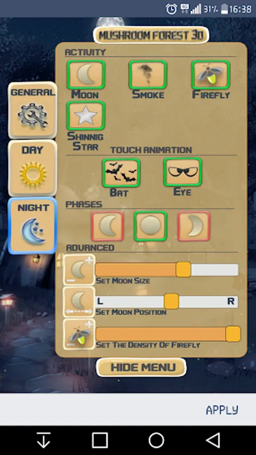 On-Off objects : Moon,Sun,Cloud,Butterfly,Firefly,Bird,Dandelion,Leaf,
