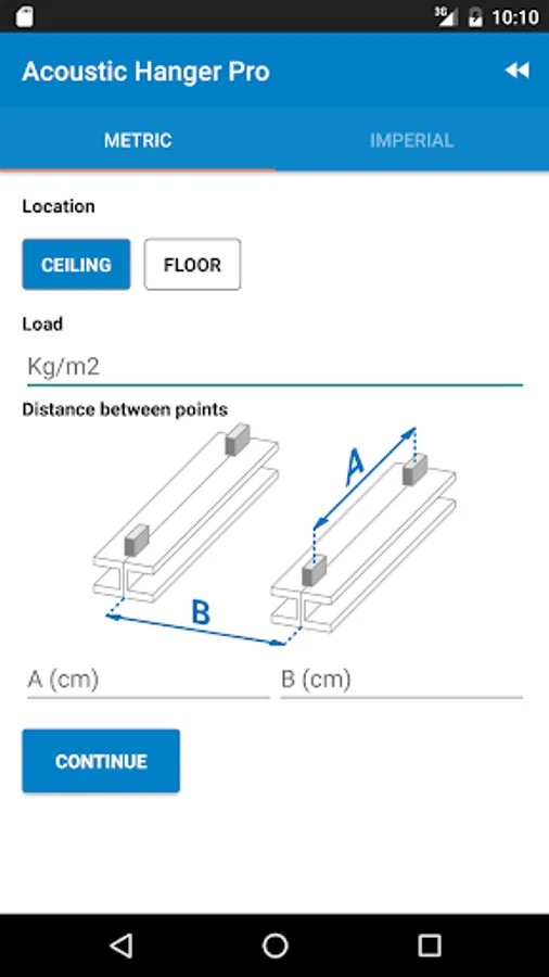 This app allows you select the acoustic hanger according to the degree of isolation or cost effectiveness.
