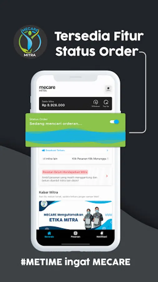The latest MECARE Mitra application is used to take service orders ordered by the customer. This latest application provides various facilities for partners, such as order history management, partner income, and communication with customers. Registered MECARE partners can provide services according to the selected service and take advantage of the various conveniences this application offers. This application uses location access at the time of use and in the background to track the position of partners so that they get orders according to the closest location.