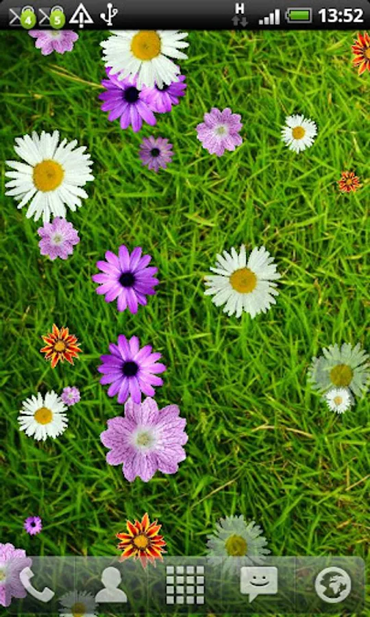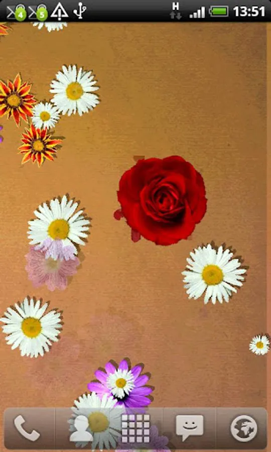 Shows animated flowers of a configurable background. Touch the screen to show a nice rose.