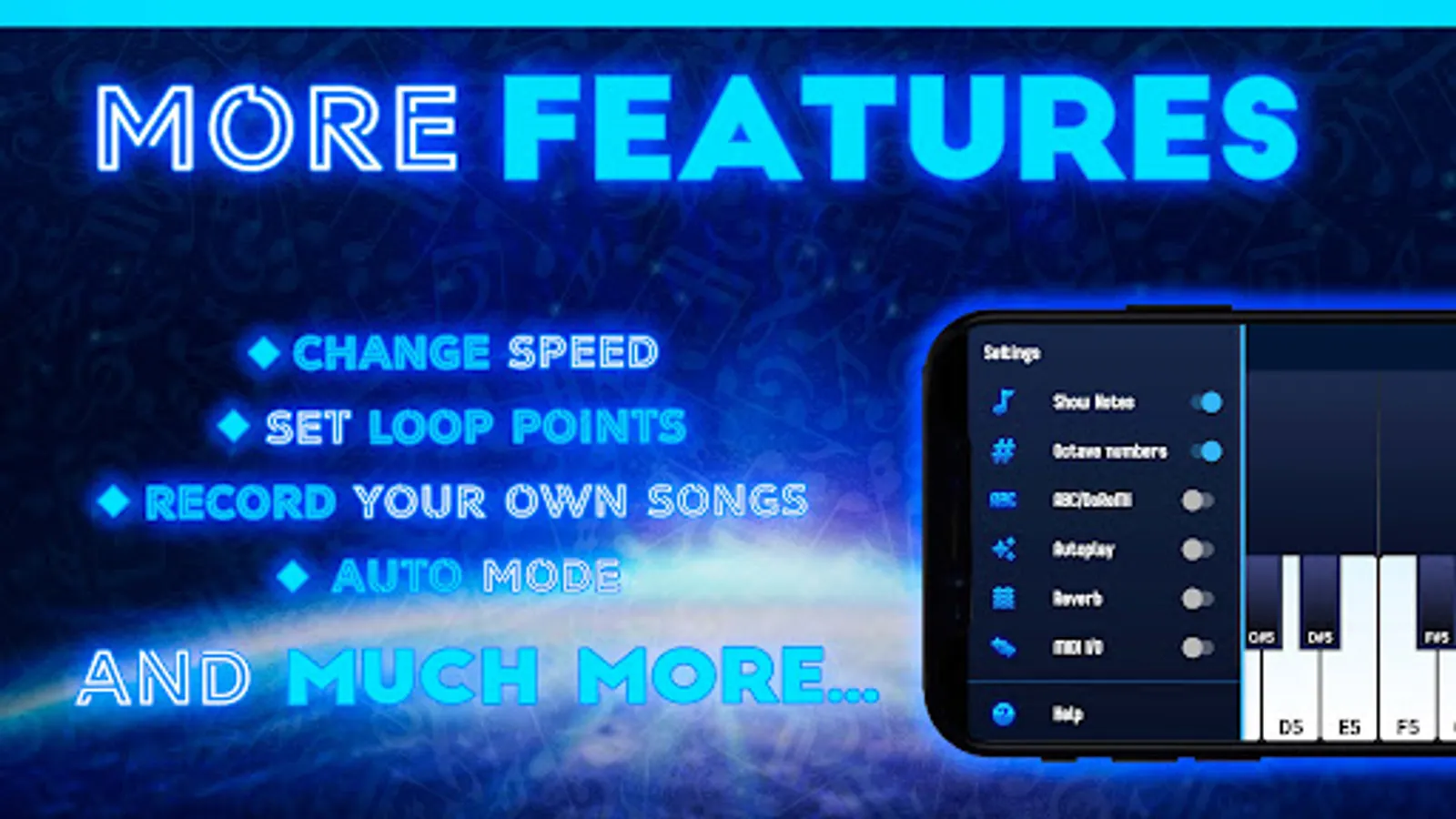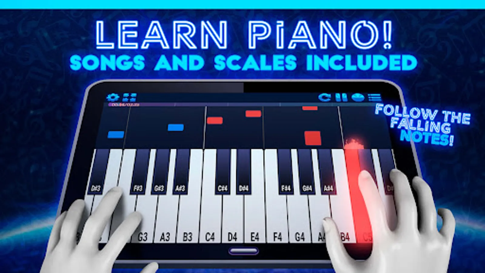 • Colorful and beautiful falling notes to follow along, no musical experience required!