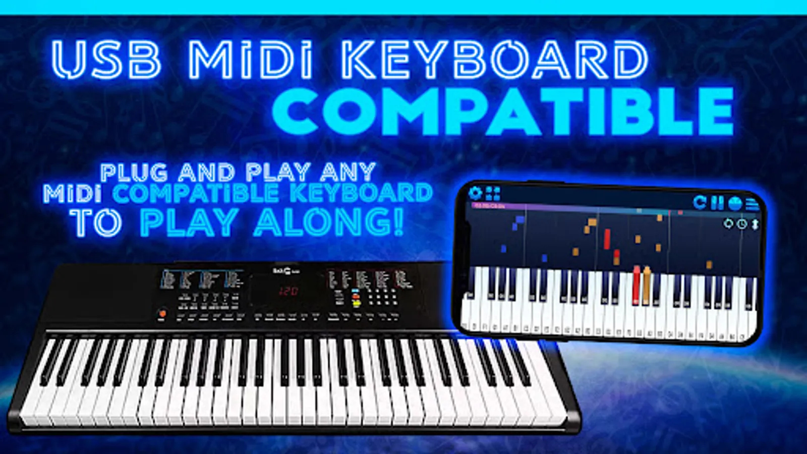 • USB MIDI Keyboard Support: Plug and play any MIDI compatible keyboard to play along!