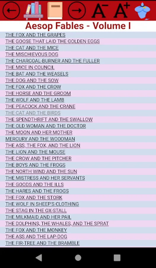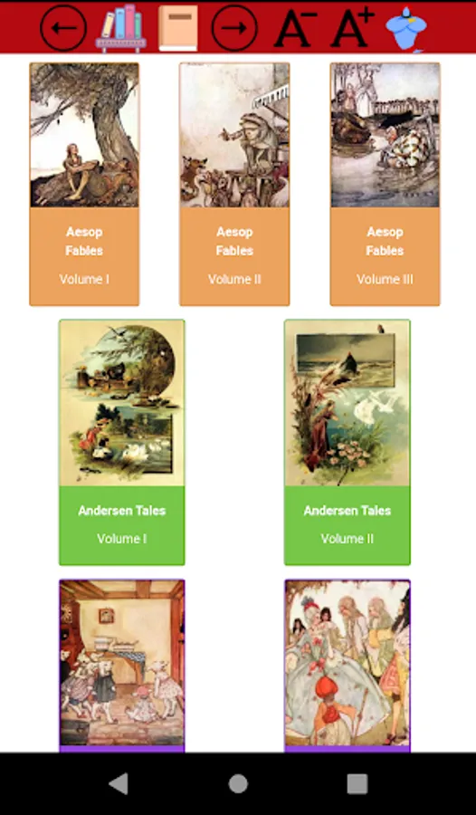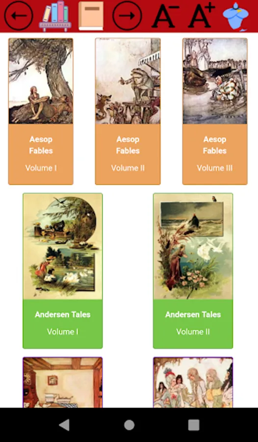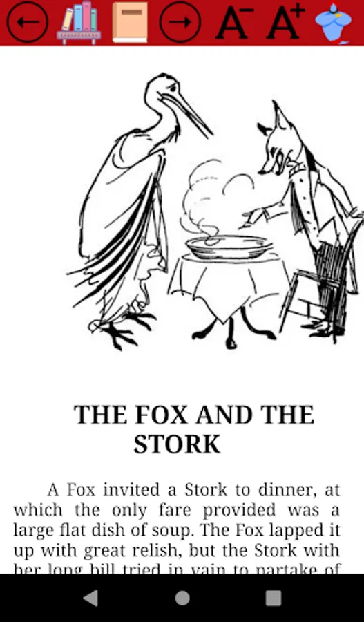 Genie The Tale-Teller has more than 300 fables and tales with pictures. The app is very easy to use.