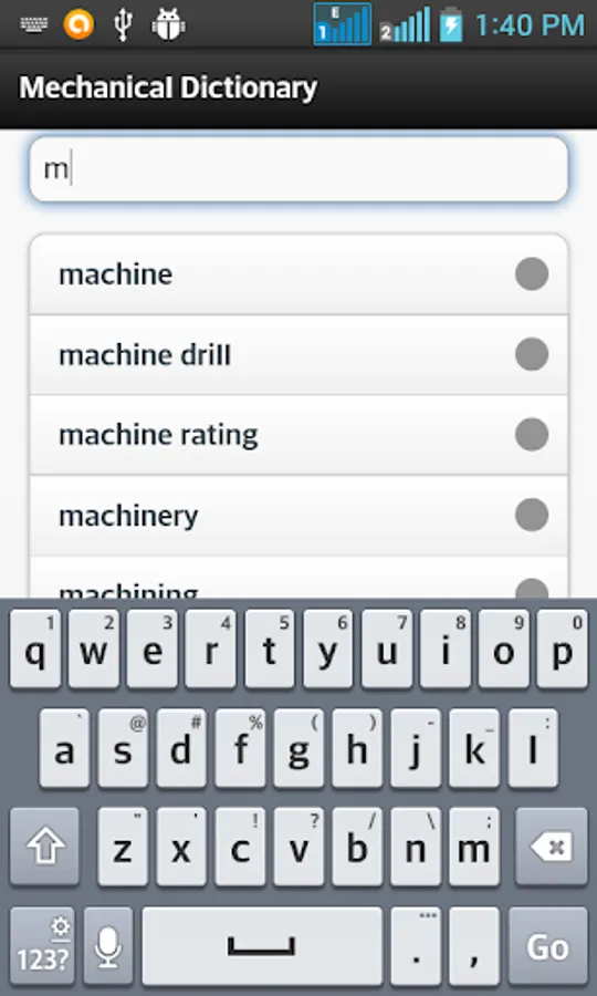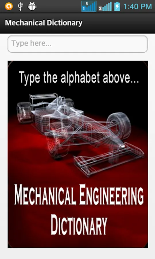 The whole dictionary contains the words related to mechanical engineering the terms or words used in this field mentioned in this dictionary,It enhance your knowledge regarding this field ,helpful for education as well as other related purpose.Search option is also given to find out the word.