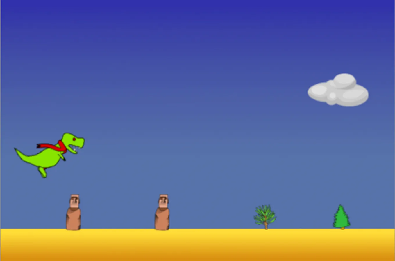 Enjoy 6 levels of running action, in this parkour - like game featuring a green dinosaur with a scarf.
