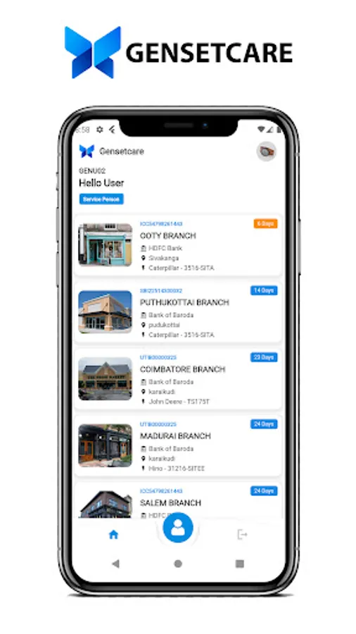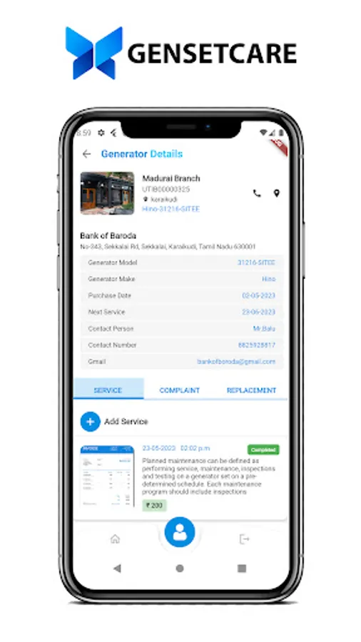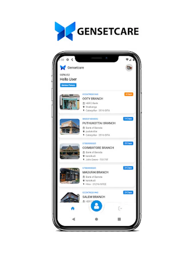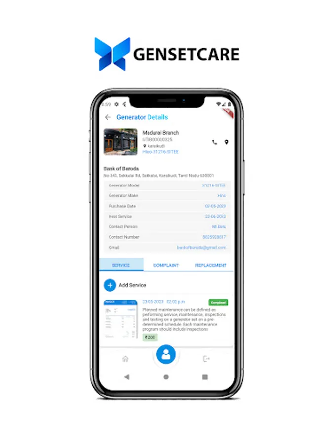 Genset Cares is service monitoring application for heavy generators in bank branches in tamilnadu and kerala. Service person update their service record through Genset Cares application. Usually, four service per year service handled.