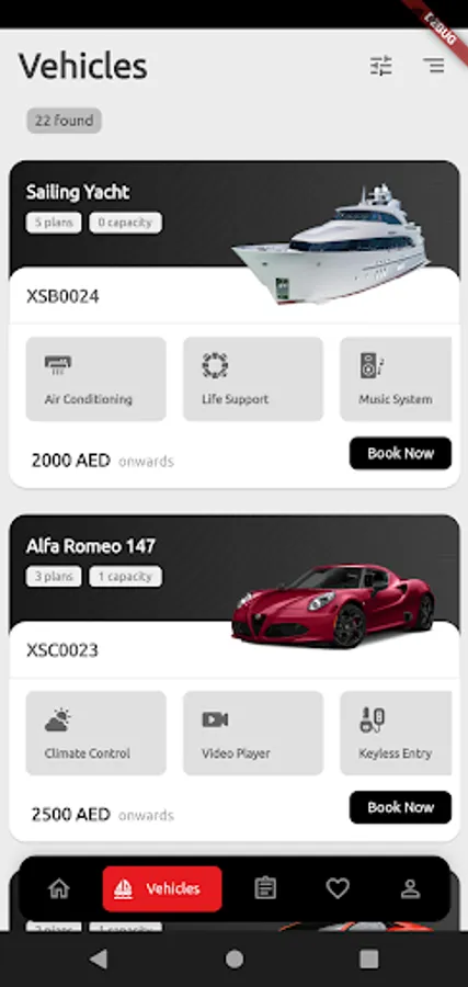 Xotic includes popular dealers with available vehicles. User can compare prices and book particular vehicle at any time.