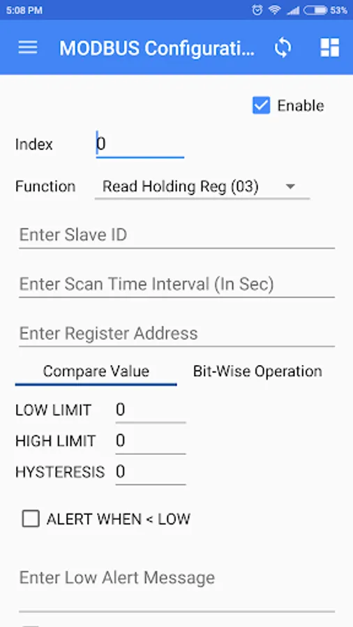It also includes MODBUS alert that user can get MODBUS monitoring system on mobile. GSM based MODBUS alert system is useful in plant and process monitoring remotely.