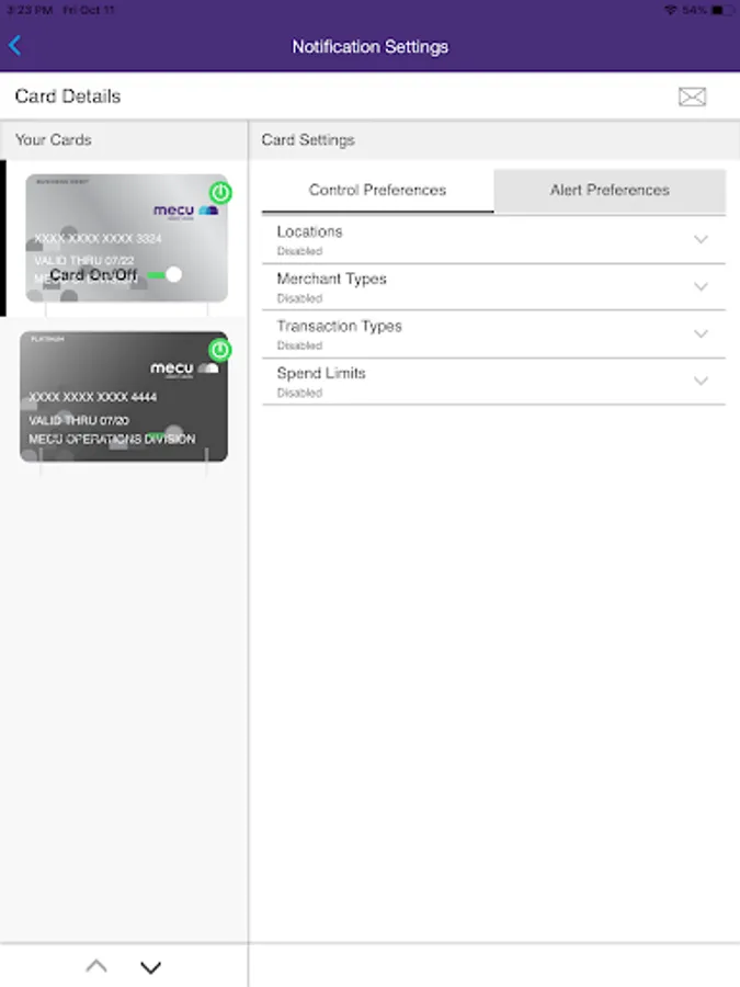 The MECU Cards App provides debit and credit cardholders with powerful card management and security tools, including: