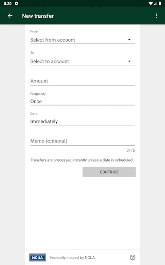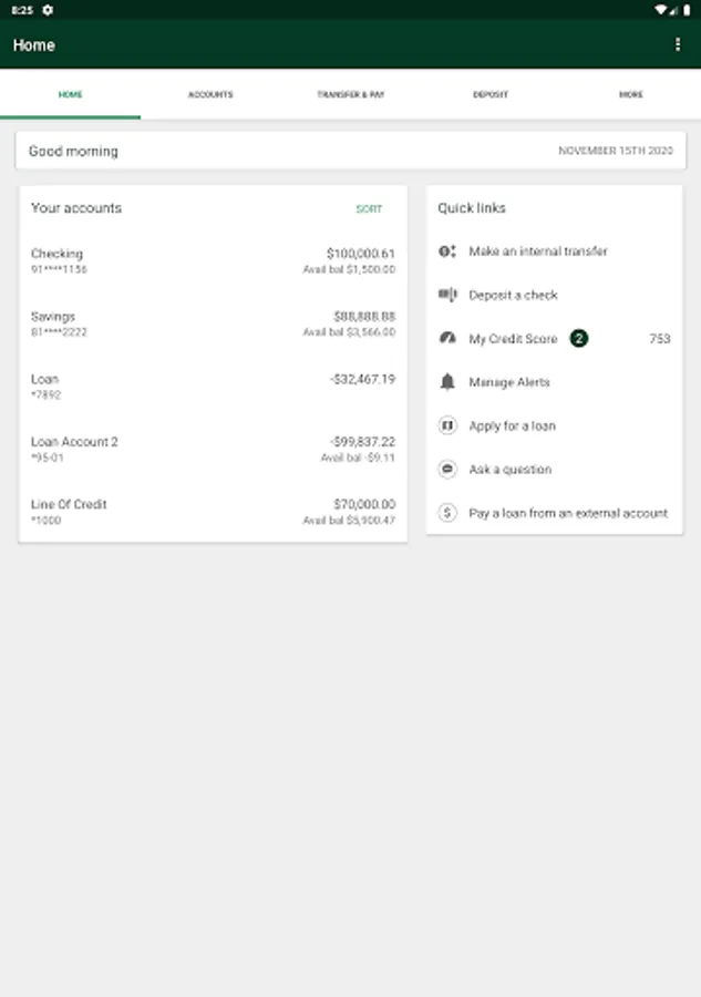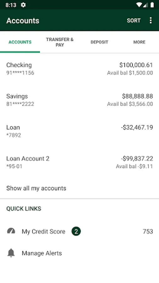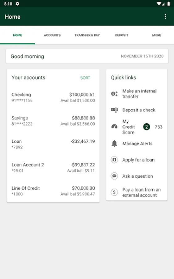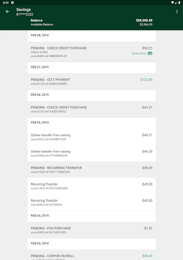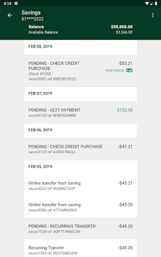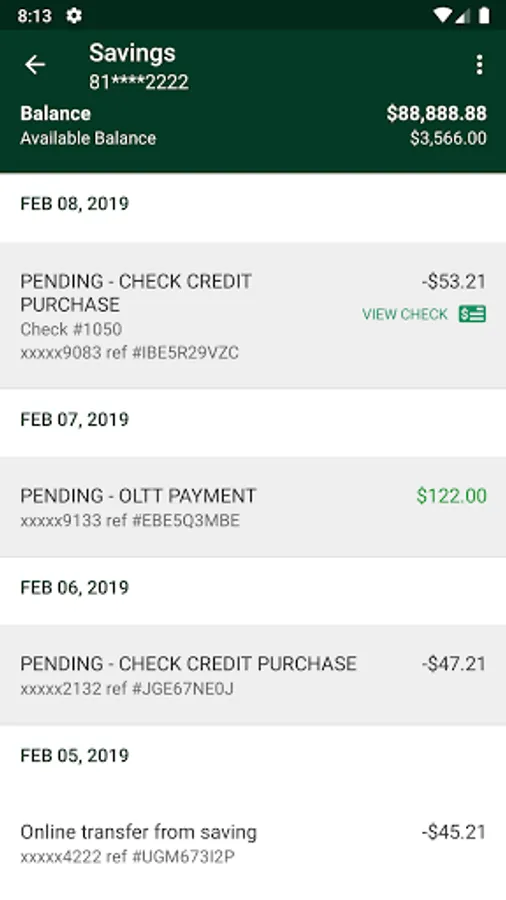 - Check your latest account balance and search recent transactions by date, amount, or check number.