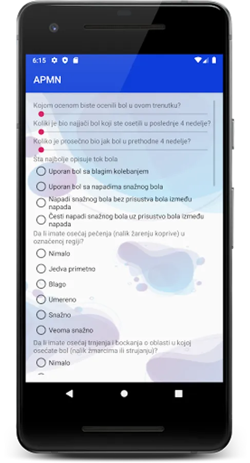 An application intended for medical workers to exchange information and opinions based on filling in information about the patient's pain.