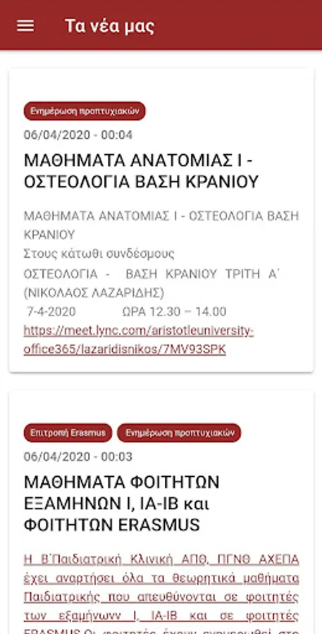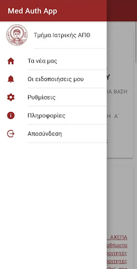 The MEDAUTh App is an initiative of the Department of Medicine, AUTh, with the aim of creating a large information and service network with benefits for all its members. It is essentially a smart application for mobile devices through which users choose to be informed about the issues that interest them without having to visit the website of the Department and search for them among all the announcements.
