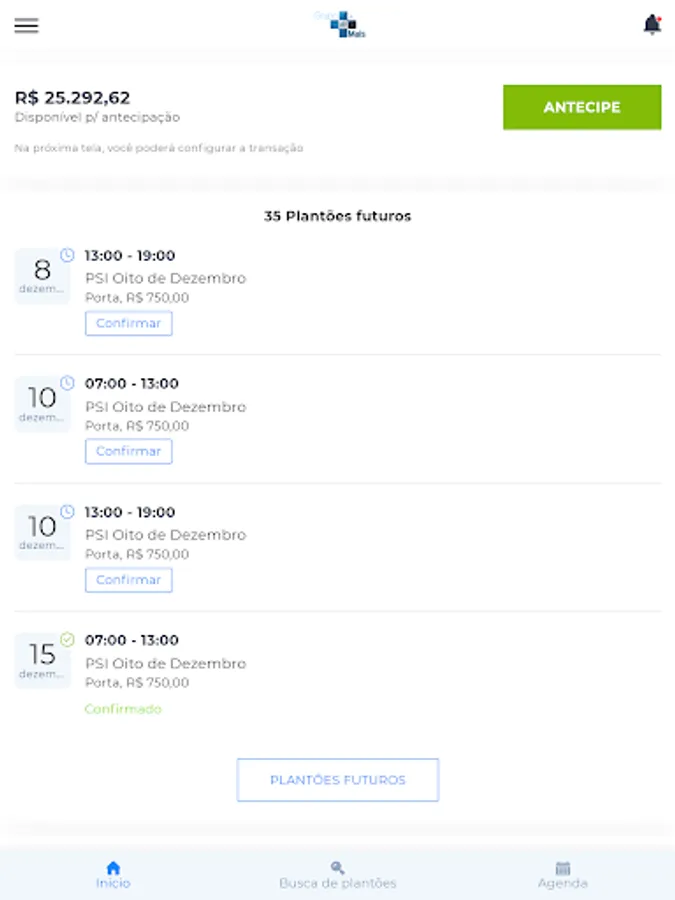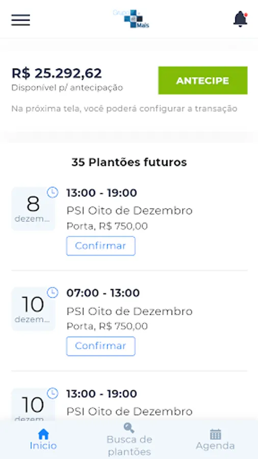 Grupo Mais Plantões is Grupo Mais's application for managing rosters and transfers of fees to doctors.