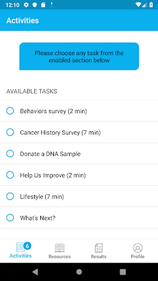 • Complete surveys about your health habits and environment to aid us in early detection research and allow us to follow your health for as long as you choose to participate
