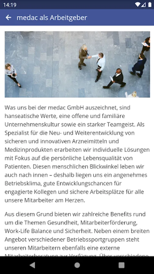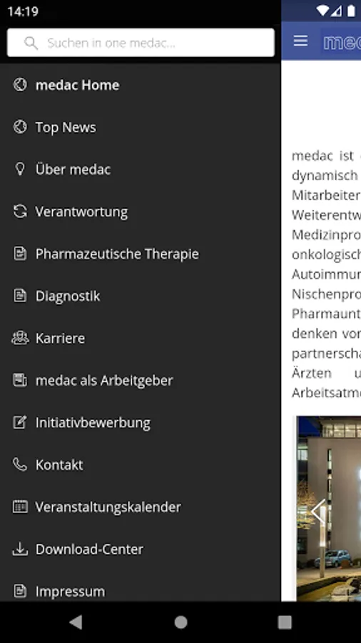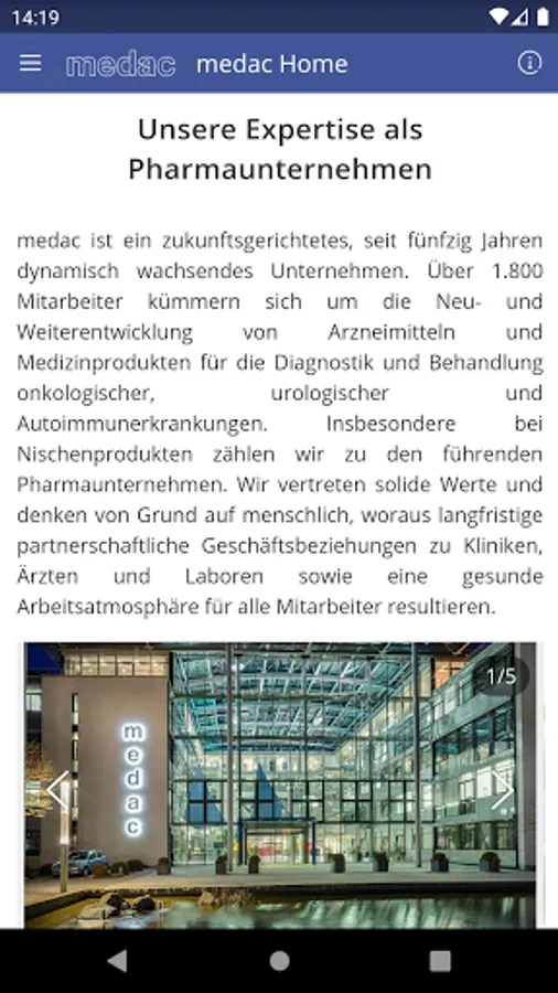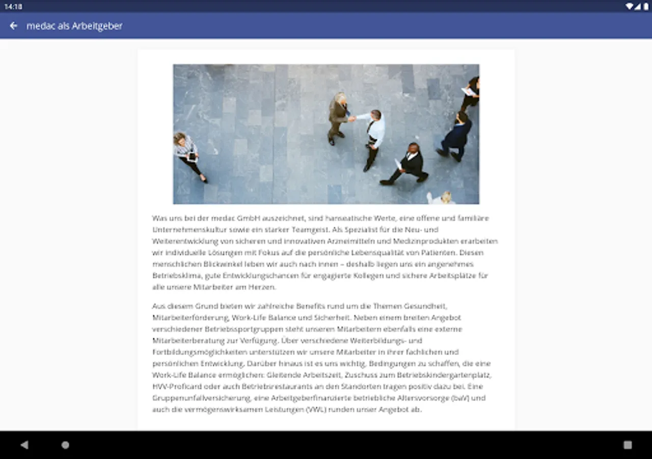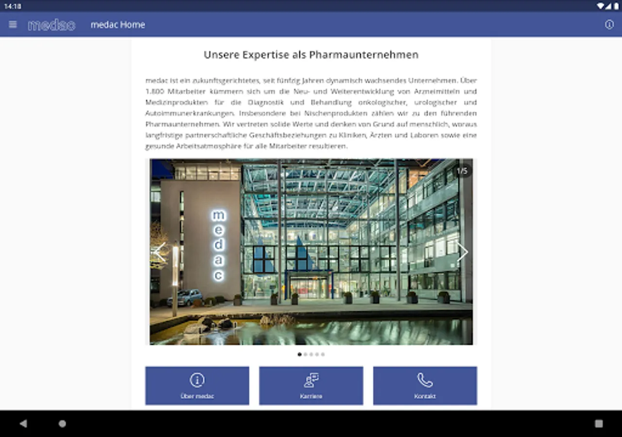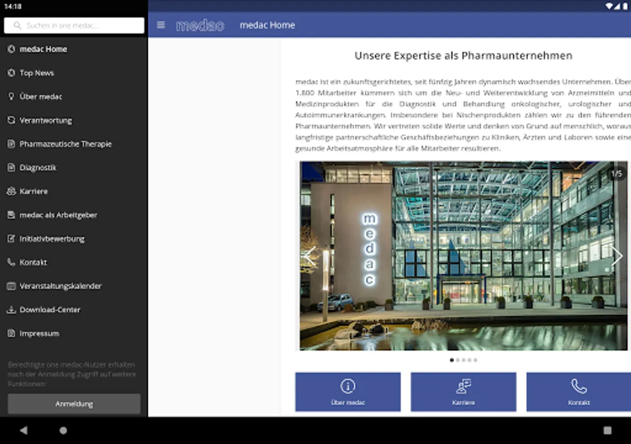 The one medac app offers both interested parties and applicants an insight into the business activities of the globally active pharmaceutical company medac located in Wedel, Germany.