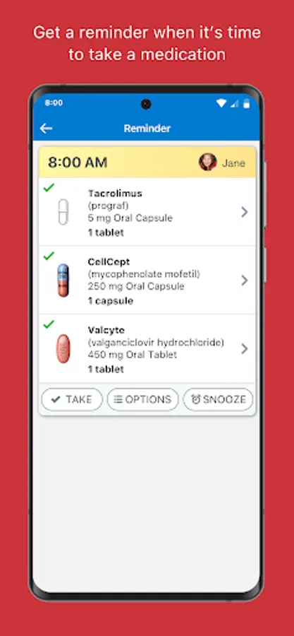 Automatically receive reminders for all of your pills and supplements. You can mark meds taken directly from the notification screen or by opening the app.