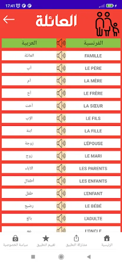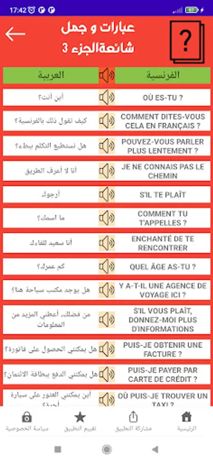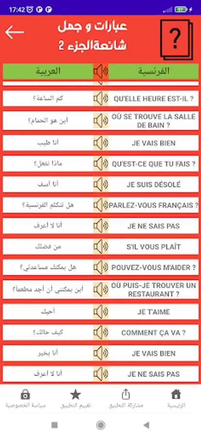 عرض الجمل و الكلمات بالفرنسية ومعناها بالعربية -