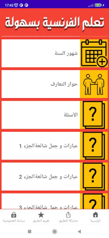 تعلم الفرنسية بسهولة هي ببساطة تطبيق يسمح لك بتعلم اللغة الفرنسية وإتقانها بأسهل طريقة. يحتوي على أمثلة تساعدك على فهم اللغة الفرنسية ويحتوي أيضًا على عدة أقسام ، ويحتوي كل قسم على عدد كبير من الكلمات والأمثلة لتسهيل الفهم.