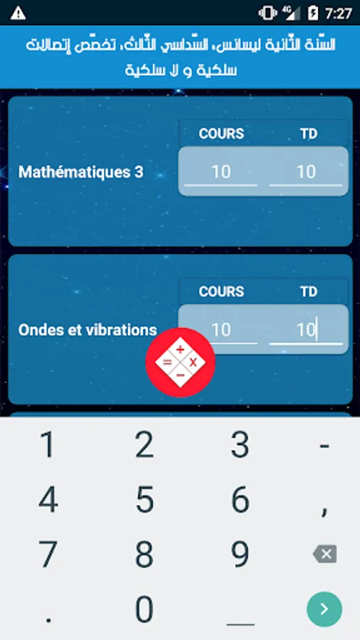 Vincels is an application to calculate the average of the disciplines of science and technology in Algeria Bachelor or master in all their branches, which can be used to calculate the average of 20 majors Bachelor of all years (first common trunk, and the second and third years in all disciplines), in addition to 38 full master.