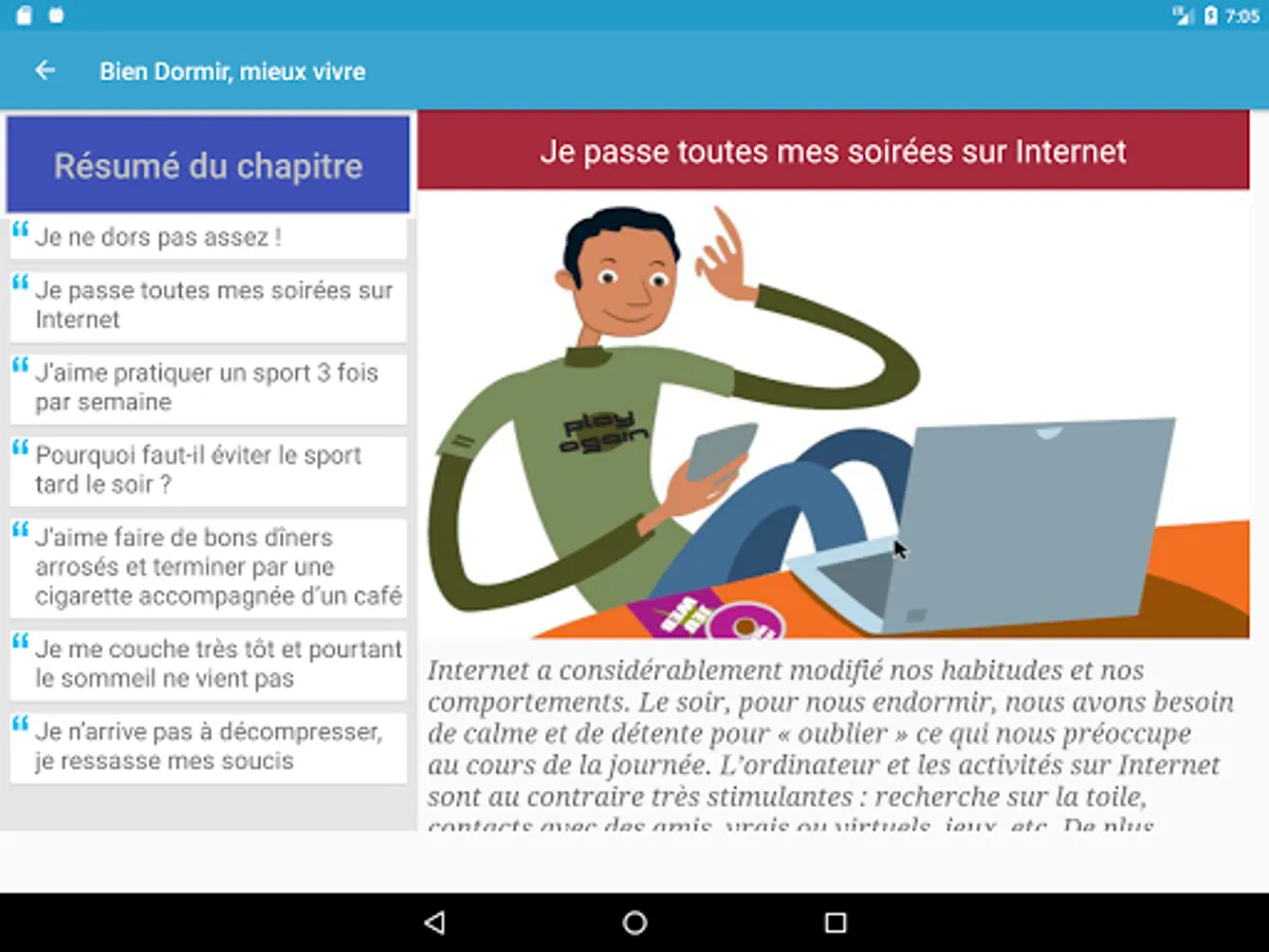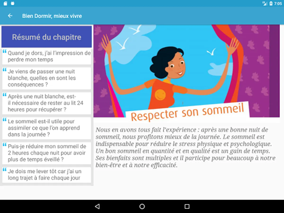 - discover the good habits to take to sleep better at night, naps and how actively recover after a good workout.