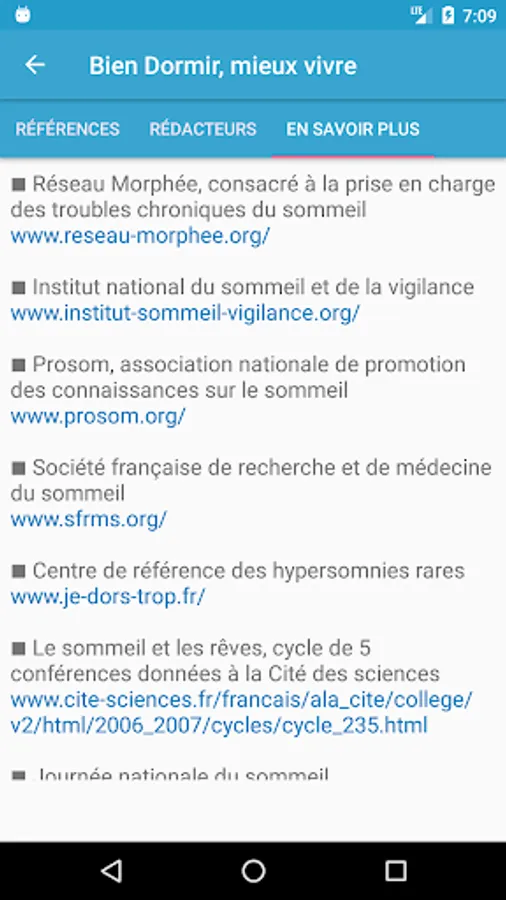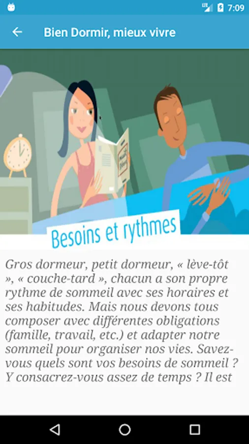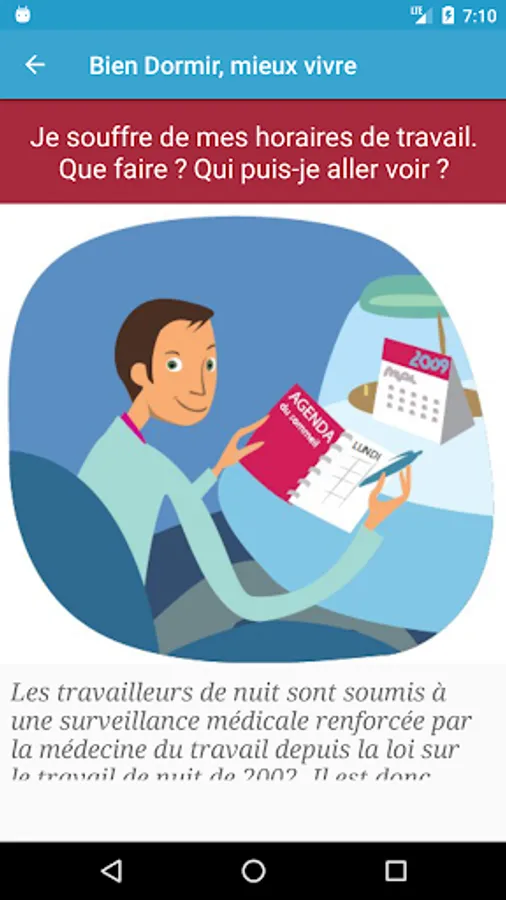 The application also shows you some sleep apropos statistics, answers some questions about the same topic.